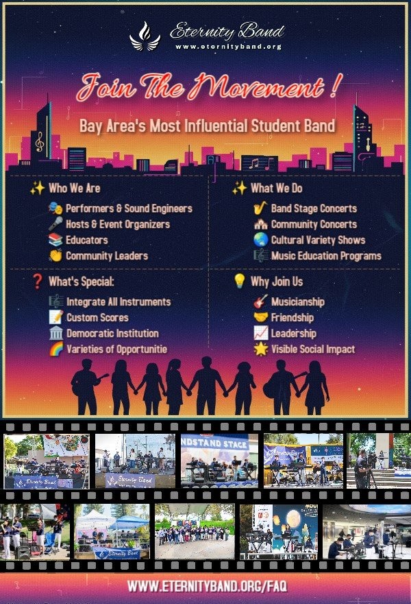 Members of the Eternity Band are not only musically talented, they are also socially responsible and academically distinguished. Besides our concerts, the band organizes many volunteer activities, such as year-round academic tutoring, community music education, short-term educational seminars, community clean-up events, and donation drives. These activities are listed on our sister website www.goaudacity.com